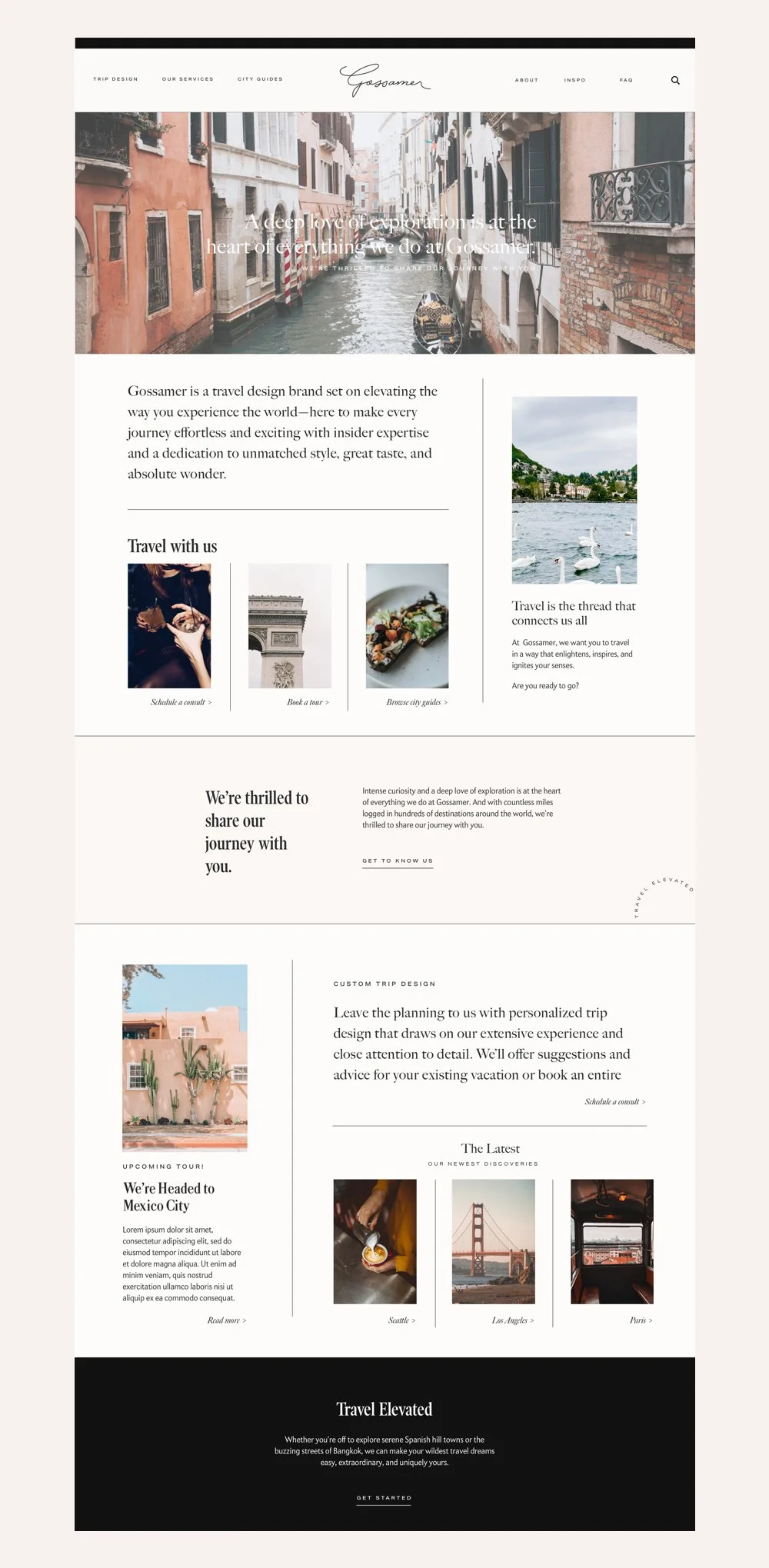 Visual identity and website design for a chic travel agency reimagined for the modern age.
