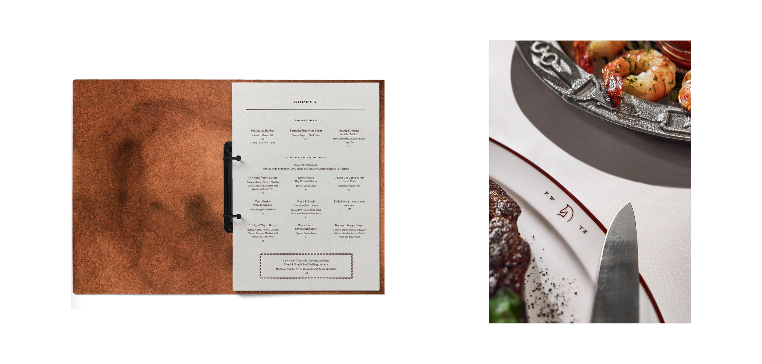 Visual identity and collateral package for a hotel and restaurant rooted in Texas heritage.